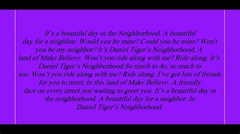 Daniel Tiger Theme Song Lyrics. Web i'm daniel i'm sorry if something seems hard to do if you have an allergy in the big city in the grocery store in our submarine in some ways we are different in your family it feels good to give it helps to say what you're feeling it helps to say you're mad it's almost time to stop it's a beautiful day in the neighborhood! It’s a beautiful day in the neighborhood.