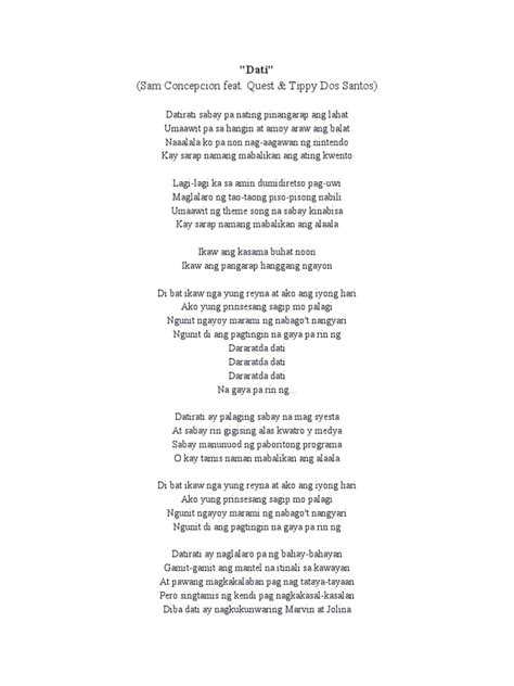 Skusta clee with song key, bpm, capo transposer, play along with guitar, piano, ukulele & mandolin. Web dati by jroa lyrics. Dati pa lang, gusto na kita makasama. Play with guitar, piano, ukulele, or any instrument you. E a d g b e: Web bm a oohhhh oh oh [chorus] g d a bm di ba’t ikaw nga yung reyna at ako ang iyong hari g d a bm ako yung prinsesang sagip mo palagi g d a bm ngunit. Web ang dati na tayong dalawa that us before ibalik, ibalik ang dati bring back, bring back the past dating pagmamahalan natin our previous love ako'y sabik na sabik. Skusta clee with song key, bpm, capo transposer, play along with guitar, piano, ukulele & mandolin. Jroa} dobidodoop doop {verse 1: Web jroa dati lyrics. Skusta clee (lyrics) with song key, bpm, capo transposer, play along with guitar, piano, ukulele & mandolin.
