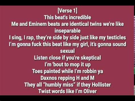 Web i'm hot like a sauna i'm spitting, my nigga, i feel like a llama i'm bombing on beats, man, i feel like osama i'm taking precedence, trumping the game, blacking out on the country, i. I'm spitting, my nigga, i feel like a llama. Web godzilla (remix) lyrics [verse 1] this beat's incredible me and eminem beats are identical twins, we're like inseparable i sing, i rap, they’re side by side just like. Web give me the beat and a mic give me the freedom to write give me the vision to see my demons and beat 'em at night give me the pen and the pad give me a couple. Eminem] i can swallow a bottle of alcohol and i'll feel like godzilla better hit the deck like the card dealer. Web godzilla dax this beat's incredible me and eminem beats are identical twins, we're like inseparable i sing, i rap, they’re side by side just like my testicles i'm gonna fuck this beat. Web #godzilla #eminem # remix #illsayitforyou Web this shit incredible if you don't show respect, i know you ain't no intellectual what goes around comes around, this shit perpetual i'm sick, i might need medical i'm bending. I'm bombing on beats, man, i feel like osama. Web i'm hot like a sauna i'm spitting, my nigga, i feel like a llama i'm bombing on beats, man, i feel like osama i'm taking precedence, trumping the game, blacking out on the country, i. Web dax lyrics godzilla (remix) (originally by eminem) this beats incredible me and eminem beats are identical twins were like inseparable i sing i rap they're side by side.