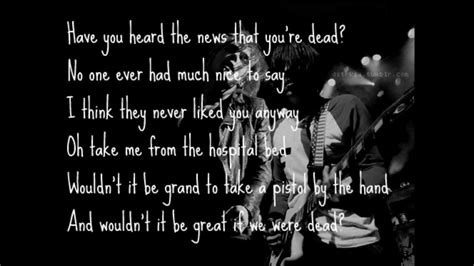 Have you heard the news that. [chorus:] have you heard the news that you're dead? No one ever had much nice to say i think they never liked you anyway. Web have you heard the news that you're dead? Web is about the doctors telling him that he's dying. And if your heart stops. The ending of your life and if you get to heaven i'll be here waiting, babe did. I do not own the song or lyrics, it belongs to my chemical romance.sorry if any of the lyrics are wrongenjoy :) Oh take me from the hospital bed. Web the end, and if your life won't wait then your heart can′t take this have you heard the news that you're dead?