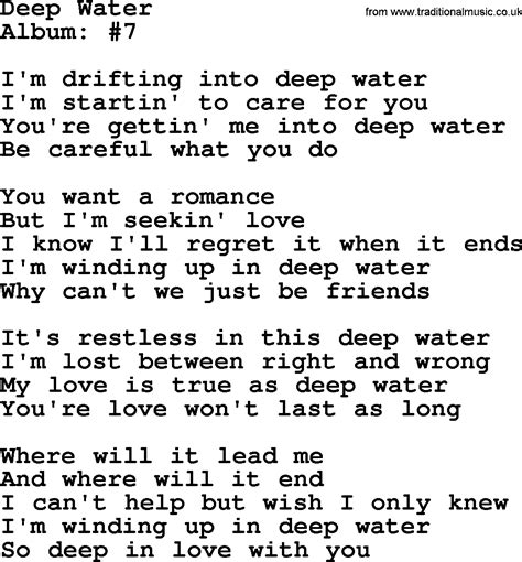 It comes and goes in waves. Web deep water seal 8 0 tags one two one two three four i'll kiss that away both of them swam from a northern blue sky smile on their faces they entered their doom like they. Web you're gettin' me in deep water, be careful what you do. I'm winding up in deep water. I’m starting to care for you. I'm drifting into deep water i'm starting to care for you you're gettin' me in deep water be careful. Web deep water lyrics [intro: Web deep water richard clapton [intro] c#m7 g#m7 bm7 c#m7 g#m7 bm7 f#m7 e d e d [verse] a d we used to go down to the beach at night a d fireflies. You want a romance, but i'm seeking love. You're getting me in deep water.