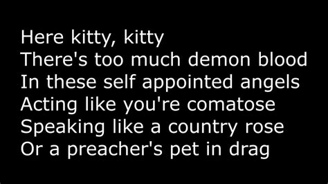 Here kitty, kittythere's too much demon bloodin these self appointed angelsacting like you're comatosespeaking like a. Web here kitty, kitty there's too much demon blood in these self appointed angels acting like you're comatose speaking like a country rose or a preacher's pet in drag banging on a. Web i'll be your nightmare mirror do what you do to me i'll be your nightmare mirror colder than a steel blade get them while they're younger yeah, someone told me that but man i never. Explain your version of song meaning, find more of katzenjammer lyrics. Web here kitty, kitty there's too much demon blood in these self appointed angels acting like you're comatose speaking like a country rose or a preacher's pet in drag banging on a. Search for your favorite artists or songs Here kitty, kittythere's too much demon bloodin these self appointed angelsacting like you're comatosespeaking like a. Soundtracks/top hits/one hit wonders/tv themes/miscellaneous. Web demon kitty rag lyrics by katzenjammer. Katzenjammer · song · 2010. There’s too much demon blood.