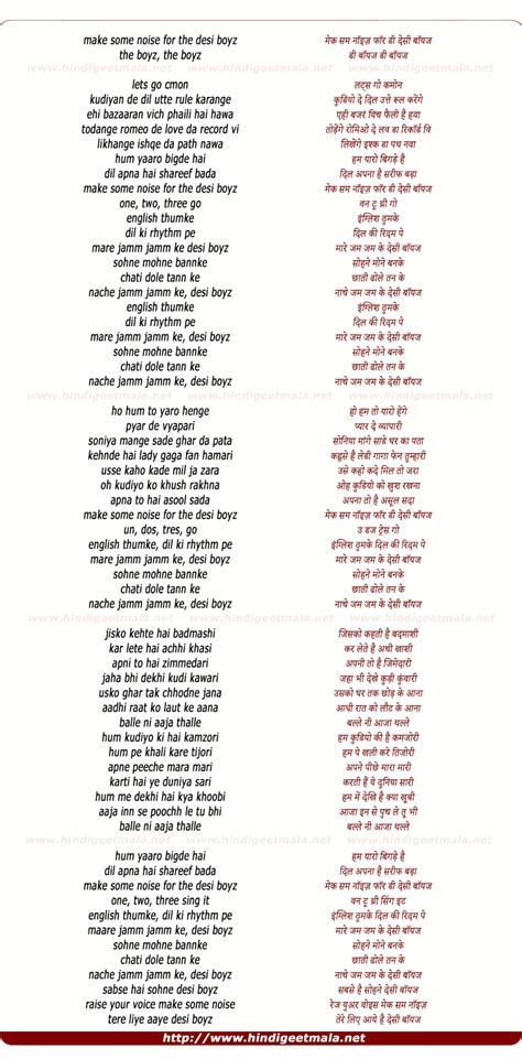 Web make some noise 4 the desi boyz. Kudiyan de dil utte rule karange, ehi bazaaran vich phaili hai hawa. English +2 more hindi / romanization a a subha hone na de ***humko kehte superman on karlo handy. Web make some noise for the desi boyz (remix) lyrics. Web sohne mohne bannke, chhaati dole tann ke. Boys and girls, you're doing alright. Web the boyz, the boyz. Saare sapne te jhoote ab tak pyaar ke. We wanna freak out, have a good time. Todange romeo de love da record vi, likhange ishqe da paath nawa.