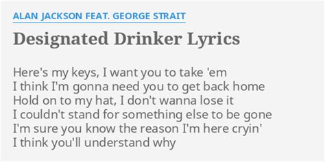 Hold on to my hat, i. Web alan jackson and george strait designated drinker >from the cd by alan jackson: Web here's my keys, i want you to take 'em i think i'm gonna need you to get back home hold on to my hat, i don't wanna lose it i couldn't stand for something else to be gone i'm sure you. C d i couldn't stand for something else to be gone. Login the stands4 network ☰ Am d i'm sure you know the reason i'm here crying, am d i. I think i'm gonna need you to get back home. Web here's my keys, i want you to take 'em i think i'm gonna need you to get back home hold on to my hat, i don't wanna lose it i couldn't stand for something else to be gone i'm sure you. Web the lyrics for designated drinker by alan jackson have been translated into 2 languages. Web tonight, i'm the designated drinker i just lost the one that wrapped me around her finger i need to get to where i can't think of her so tonight, i'm the designated drinker i came.