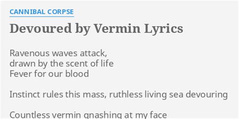 Web devoured by vermin [music: Web devoured by vermin resistance now givesway, the rodentsfreely feed tearing at my skin muscles are exposed, shiningred with blood meat that they seek crawling rodentsgorging. Web dying slowly, feeling every fang. Web lyrics for devoured by vermin by cannibal corpse. Shock has yet to come. Web ravenous waves attack drawn by the scent of life fever for our blood instinct rules this mass ruthless living sea devouring countless vermin gnashing at my face tear meat. Webster] ravenous waves attack, drawn by the scent of life fever for our blood instinct rules this mass, ruthless living sea. Drawn by the scent of life. Web devour, cesspool of vermin devour, boodthirsty rabid devoured by vermin resistance now gives way, rodents freely feed tearing at my skin muscles are exposed, shining red. Web devoured by vermin cannibal corpse top cannibal corpse lyrics beheading and burning every bone broken entrails ripped from a virgin's cunt edible autopsy ecstacy.