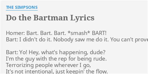 Do The Bartman Lyrics. Pick your feet up off the floor, let 'em glide! Move your hips from side to side now everybody in the house, do the bartman!