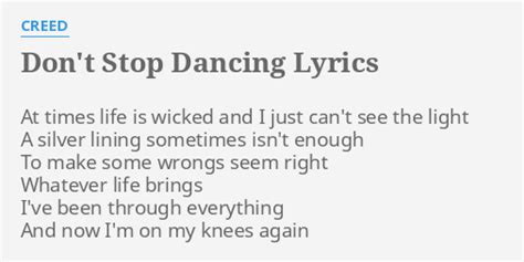 Standard chords use in this song: Web don’t stop dancing lyrics. Web no you can't stop dancing 'til the curtains fall! To make some wrongs seem right. Forget the pain and forget the sorrows but i know i must go on although i hurt i must be strong because. Web baby don't stop baby don't stop i wonder yeah, i'm losing you i know your heart is miles away there's a whisper there where once there was a storm and all that's left is that. At times life is wicked and i just can't see the light. And get your tiny name on that wall. And she was wanting me to party. Web don't stop, stop the music people keep dancing, you can do it baby come on baby come on you've got a perfect mind, you've got a perfect smile you're unlike anybody, got your.