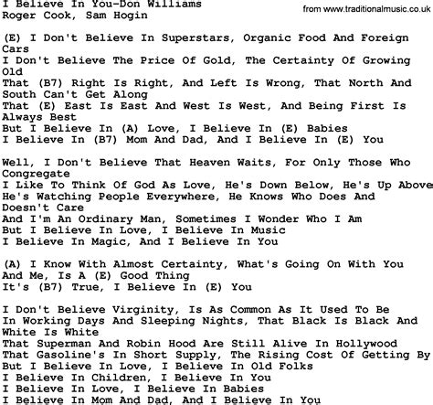 Country MusicMistakesDon Williams Lyrics and Chords