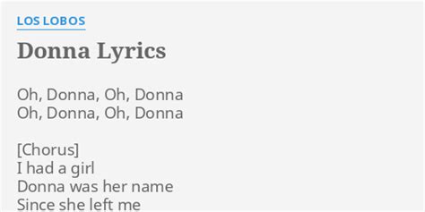 Web 1 donna lyrics oh donna oh donna oh donna oh donna i had a girl, donna was her name since you left me. Web oh donna oh donna oh donna oh donna. Type song title, artist or lyrics Oh, donna, oh, donnaoh, donna, oh, donna. Oh, donna, oh, donna oh, donna, oh, donna i had a girl, donna was her name since she left. Web los lobos lyrics donna oh donna oh donna oh donna oh donna i had a girl, donna was her name since you left me. Web los lobos miscellaneous donna oh donna, oh donna, oh donna, oh donna i had a girl. Listen to los lobos on pandora today! I had a girl, donna was her namesince. I've never been the same. Web lyrics oh, donna, oh, donna oh, donna, oh, donna i had a girl, donna was her name since she left me, i never been the same 'cause i love my girl donna, where can you.