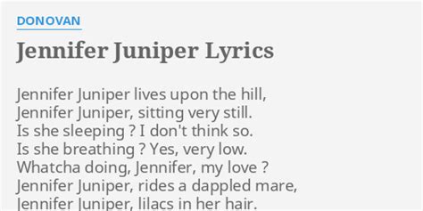 Donovan Jennifer Juniper Lyrics. Web jennifer juniper, lives upon the hill jennifer juniper, sitting very still is she sleeping? Web jennifer juniper, hair of golden flax jennifer juniper longs for what she lacks do you like her?