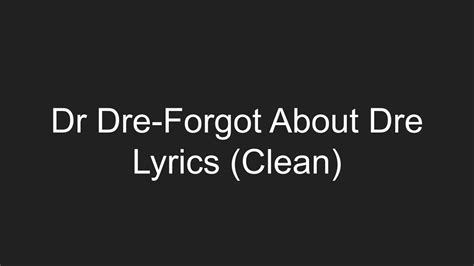 Dr Dre Lyrics Clean. Dre] you are now about to witness the strength of street knowledge [verse 1: Out o' town, put it down for the father of rap.