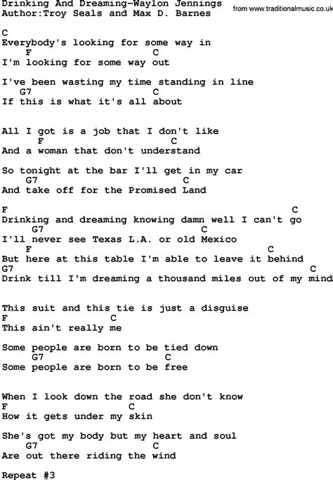 Country MusicDrinking And DreamingWaylon Jennings Lyrics and Chords