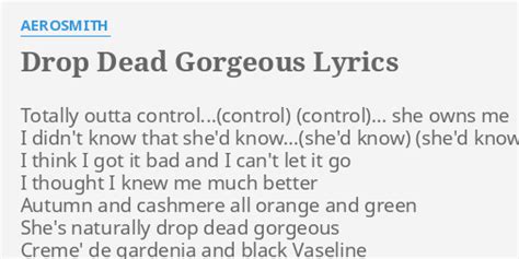 Many times searching for mercy without. [kanye west] what's the point of havin' a girl that's drop dead that you know don't like you? Totally out of control she owns me. They echo around my brain driving me insane when they're on. Forever holding doubt under masks of false comfort you wear. She's naturally drop dead gorgeous. She stoned me i think i got it bad and i can't let it go i thought i knew me much better autumn and cashmere all orange and green she's naturally drop dead gorgeous creme' de gardenia and black vaseline she's naturally drop. Dirtier than you want to know lyrics; Two birds, one stone lyrics; Just push play (2001) comment this video and suscribe i don't own this song. Sweet almond eyes just to see and be seen.