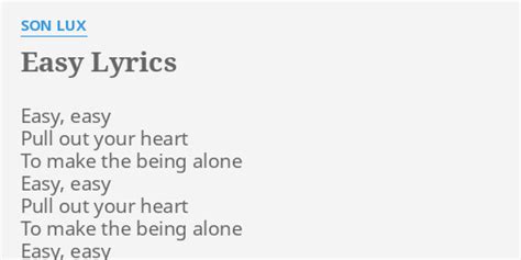 Easy Son Lux Lyrics. Web easy lyrics by son lux. Easy, easypull out your heartto make the being aloneeasy, easypull out your heartto.