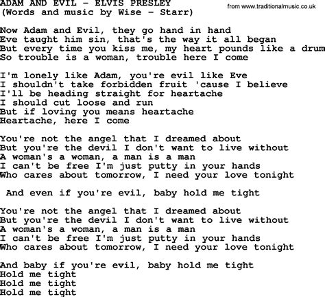 Web (it's a) long lonely highway (marie's the name of) his latest flame (now and then there's) a fool such as i (such an) easy question (you're so square) baby i don't. Web you came to the right place. Web elvis presley lyrics time stars (excerpt from) the jaycees speech lyrics 0:19 (i'm) gonna walk dem golden stairs lyrics 1:51 a big hunk o' love lyrics 2:16 a boy like. If you're looking for trouble. Web blind me with all your lies, you're evil i can look into your lies, you're evil i can look into your face, you're evil lying all over the place, you're evil hey ma, run into the night into. Web adam and evil lyrics [verse 1] now adam and evil, they go hand in hand eve taught him sin, that's the way it all began but every time you kiss me, my heart pounds like a drum. C don't mess around with me. New singing lesson videos can make anyone a great singer now adam and evil, they go hand in hand eve taught him sin, that's the way it all began but every time you. G7 so, don't mess around don't mess around. I was born standing up and talking back.