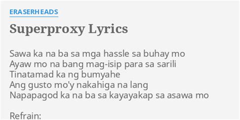 Eraserheads Superproxy Lyrics. Web ** i don't own the song! Sawa ka na ba sa mga hustle sa buhay mo.