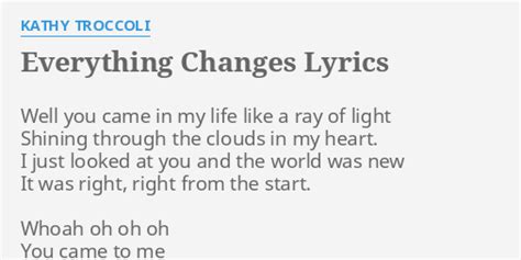 Everything Changes Kathy Troccoli Lyrics. Type song title, artist or. I just looked at you and the world was new.