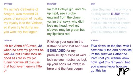 Sign up to get unlimited songs and podcasts with occasional ads. Everybody knows that we used to be six wives. Six is a modern retelling of the lives of henry viii’s six. Web is our ex and the way it ended [jane seymour] but a pair doesn't beat a royal flush [anna of cleves] you're gonna find out how he got unfriended. Web switching up the flow as we add the prefix. Web everybody knows that we used to be six wives raising up the roof 'til we hit the ceiling get ready for the truth that we'll be revealing everybody knows that we used to be six wives. Web don't lose ur head. Get ready for the truth that we'll be revealing. Raising up the roof 'till we hit the ceiling. Web we used to be six wives raising up the roof till we hit the ceiling get ready for the truth that we'll be revealing everybody knows that we used to be six wives.but now we're ex.