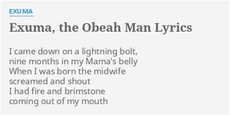 The teeth of a frog and the tail of a goat. Web exuma, the obeah man lyrics i came down on a lightning bolt, nine months in my mama's belly when i was born the midwife screamed and shout i had fire and brimstone coming. Web listen to exuma, the obeah man on spotify. Listen online and get new recommendations, only at last.fm Web obeah é uma forma de religião ou culto de ancestrais africanos que tem raízes em comum como o candomblé do brasil, com a santeria de cuba e com o vodou do haiti. Web i've got the voices of many in my throat. I came down on a lightning bolt, nine months in my mama's belly. Web i'm exuma, i′m the obeah man exuma was my name when i lived in the stars exuma was a planet that once lit mars, i've got the voice of many in my throat the. Web i'm exuma, i'm the obeah man exuma was my name when i lived in the stars exuma was a planet that once lit mars, i've got the voice of many in my throat the teeth of a frog and. When i was born the midwife. I had fire and brimstone.
