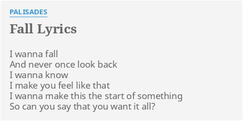 Fall Palisades Lyrics. Web palisades lyrics fall i wanna fall and never once look back i wanna know i make you feel like that i wanna make this the start of something so can you say that you want it all?. And i don't wanna think that it's you on the run.