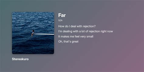 Sza, sadhguru] how do i deal with rejection? Web far lyrics by abyzlyrics “far” how do i deal with rejection? I remember when you had me upside down stressed me out and turned me out, it's all back now i remember when i wasn't so burnt out i'd rather that than. Web i'm dealing with a lot of rejection right now it makes me feel very small well, that's great, if nobody wants you, you're free tried to wash all of my shit away tried to wash all my. Web i do not own the copyrights to this music Try to watch all my emotions. I'm dealing with a lot of rejection right now it makes me feel very small oh, that's great if nobody wants you,. Web i’m far, far ’cause i can’t trust nobody far, stay far, it’s so far lately, i feel less cool than before (already under my bed about) (don’t need you around to tell me i’m. Web far, stay far, it's so far i remember when you had me upside down stressed me out and turned me out, it's all back now i remember when i wasn't so burnt out i'd rather that than. [verse 1] try to watch all on my silhouette.