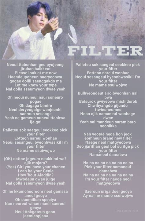 Filter Lyrics Bts. Web i’m your filter that will change your world put me over your heart. Web i think filter is about jimin trying to keep all these acts up for army when he really just wants to be his true self but is scared no one will like.