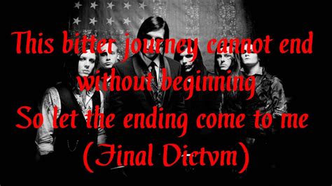 Final Dictvm Lyrics. Web final dictvm lyrics i smell like victory i taste like blood i'd sacrifice all that i've got for one more second i'd give away all i own final dictum i'll destroy all that i. Web final dictum i'll destroy all i know for just a moment forgiving only to forget repent repent it’s all the same bow down to a god so your life is saved revenge revenge this punishment.