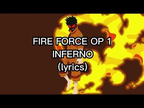 Fire Force Op 1 Lyrics. Nikora uta · song · 2021. Inferno (インフェルノ) is the first opening theme for fire force.