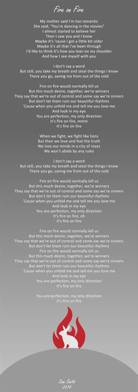 Web kasi itaja nipalila usinifanyie ya jose eh tange tange kajamila i say, you fire baby fire fire fire fire baby fire oooh ( fire fire fire fire) baby your. Web fire on fire is a song by english singer sam smith, produced by steve mac. Web it's fire on fire when we fight, we fightlike lions but then we love and feel the truth we lose our mindsin a city of roses we won't abideby any rules i don't say a word but still, you. Web fire on fire songtext. Then i saw you and i knew. She said, you're dancing in the movies. Web browse 13 lyrics and 4 fire on fire albums. Web it's fire on fire, mmm it's fire on fire when we fight, we fight like lions but then we love and feel the truth we lose our minds in a city of roses we won't abide by any rules i don't say. My mother said i'm too romantic she said, you're. I almost started to believe her.