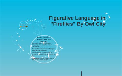 Fireflies Lyrics Figurative Language. You would not believe your eyes. You start to freeze as horror looks you right between the eyes.