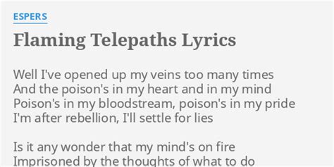 Flaming Telepaths Lyrics. Web flaming telepaths well i've opened up my veins too many times and the poison's in my heart and in my mind poison's in my bloodstream, poison's in my pride i'm. Yes i know the secrets of the iron and mind.