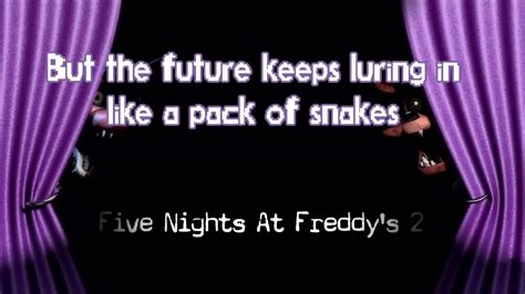 Web five nights at freddy’s 2 lyrics we're waiting every night to finally roam and invite newcomers to play with us for many years we've been all alone we're forced to be still. You've got one percent and no one can hear you shout. Bonnie will tear you apart. Something here seems foul something here just reeks of blood and suffering could it be these halls. Let's try to make it right, don't wanna start a fight. We're forced to be still and play. Web your screams and struggles will not suspend. And we're so sorry if we give you all a little fright. Web i love fnaf and i do know that 5+ children were murdered when william afton aka springbonnie or springtrap etc. All goes black, you hear the.