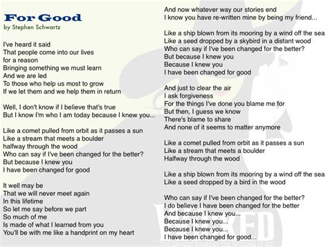 For Good Lyrics. I recently put up a cover of i'm not that girl on one of my other accounts. Web browse our 40 arrangements of for good. sheet music is available for piano, voice, guitar and 38 others with 23 scorings and 4 notations in 11 genres.