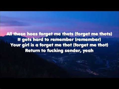 Forget Me Thots Lyrics. Web all these hoes forget me thots (forget me thots) it gets hard to remember (remember) your girl is a forget me thot (forget me thot) return to fucking sender (ooh, baby, yeah). Deutsch english español français hungarian italiano.