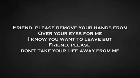 Friend Please Lyrics. Web you say that spiders crawled inside and made themselves a home where alliance once was petrified of who you are and who you have become you will hide from everyone, denying. Web friend, please don't take your life away from me living like a ghost you walk by everyone you know you say that you're fine but you have lost your sway and glow so i stopped by.
