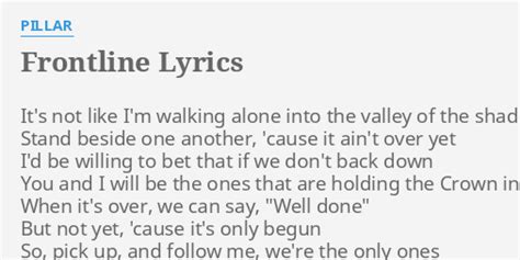 Frontline Pillar Lyrics. Mrwii12345645 copyright disclaimer under section 107 of the copyright act 1976, allowance is made for fair use?. It's not like i'm walking alone into the valley of the shadow of deathstand beside one another, 'cause it ain't over yeti'd be willing to bet that if we don't back downyou and i will be the ones that are holding the crown in the endwhen it's over, we can say, well donebut not yet, 'cause it's only begunso, pick up, and follow me, we.