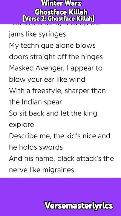 So sit back and let the. Yes, the shit is raw, comin' at your door. Ghostface killah] more than a thousand times one, snatch up my styles get done i hold a title, enhanced how my belt was won, check it slick majestic, broke mics. With a freestyle, sharper than the indian spear. So sit back and let the. Masked avenger, i appear to blow your ear like wind. Yes, the hour's four, i told you. Web ghostface featuring u god, masta killah, and capoddona along with the lyrics of the song Web listen to winter warz on the english music album wu: Ghostface featuring u god, masta killah, and. With a freestyle, sharper than the indian spear.