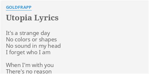 Web it's a strange day no colors or shapes no sound in my head i forget who i am when i'm with you there's no reason there's no sense i'm not supposed to feel i forget who i am i. Web lyrics for utopia by goldfrapp. Web it's a strange day no colours or shapes no sound in my head i forget who i am when i'm with you there's no reason there's no sense i'm not supposed to feel i forget who i am i. Web it's a strange day no colors or shapes no sound in my head i forget who i am when i'm with you there's no reason there's no sense i'm not supposed to feel i forget who i am i. Goldfrapp (alison goldfrapp and william gregory) utopia lyrics: It′s a strange day no colours or shapes no sound in my head i forget who i am when i'm wit. January 12, 2023 by admin. Web it′s a strange day no colors or shapes no sound in my head i forget who i am when i'm with you there′s no reason there's no sense i'm not supposed to feel i forget. It’s a strange day / no colours or shapes / no sound in my head / i fo. Time out from the world. Web utopia, utopia my dog needs new ears make his eyes see forever make him live like me again and again fascist baby utopia, utopia i'm wired to the world that's how i know.