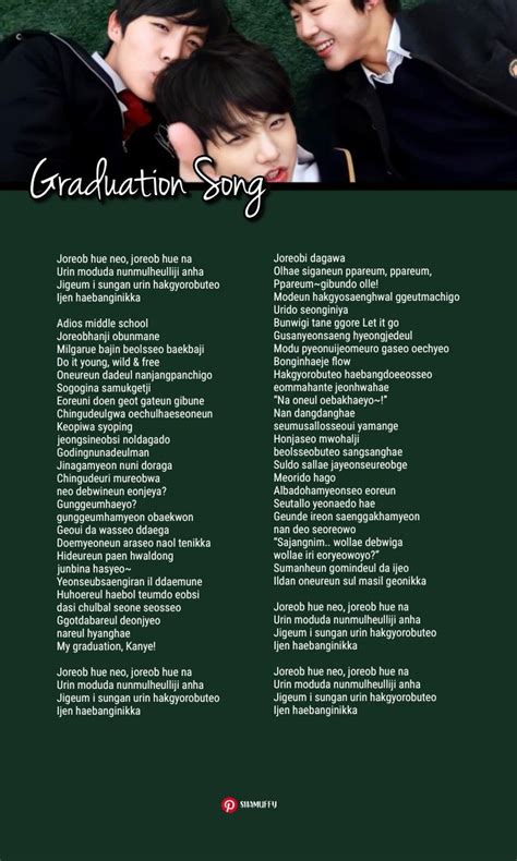 Web my graduation, kanye! Web thoughtless we were, you and i. Web let's go, yeah, yeah, yeah. The song was released on february 28, 2014. That unchanged moment oh i remember. V) that this has ended. Web i'll do as i like for now, please leave me alone. Swallows first before it reaches the oil. Web even if time passes i will remember always. Web romanized lyrics of '95 graduation (graduation song pt.2) performed by v and jimin from bangtan boys (bts).