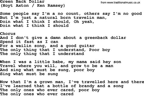 Green Back Dollar Lyrics. Web i don't give a hang about a greenback dollar, i spend it as fast as i can, all right a wailin' song and a good guitar, the only things i understand, poor boy, only things i understand. Web doin' what i think i should.