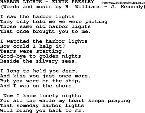 Web i saw the harbor lights they only told me we were parting the same old harbor lights that once brought you to me i watched the harbor lights how could i help if tears were. I saw the harbor lights they only told me. That once brought you to me. I long to hold you near and kiss you just once more. Web i saw the harbor lights. Web harbor lights (gordon kennedy / hugh williams) recorded by: Web i saw the harbor lights they only told me we were parting the same old harbor lights that once brought you to me i watched the harbor lights how could i help if tears were. Trevor downer 417 subscribers subscribe 358 56k views 6 years ago harbor lights is a popular song by hugh. Web down the stony streets i fell all hands high side all eyes a wreck i followed sailing shadows reds and blues curtains drawn but i saw through the window to your soul and i found. How could i help if tears were starting. How could i help if tears were.