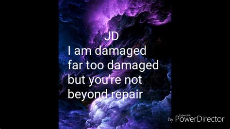 I am damaged and i don't want you to knowunder bandages are wounds i'll never showi dress them well before you come aroundand they're wrapped up 'till you. Stick around here, make things better ‘cause you beat me fair and square (jd takes the bomb from veronica). (sung) i am damaged, far too damaged, but you're not beyond repair. [intro] / ooooh ooooh ooh haha yeah / scar, fucking mad ting, yeah, yeah top 100 · top new · updates · submit lyrics Web jd i am damaged far too damaged but you're not beyond repair stick around here make things better 'cause you beat me fair and square please stand back now little further. Web about press copyright contact us creators advertise developers terms privacy policy & safety how youtube works test new features nfl sunday ticket press. Web 1 i am damaged lyrics some things just stay with you forever bro just leaves you with a permanent trauma, you get me? (sung) i am damaged, far too damaged, but you’re not beyond repair. Stick around here, make things better 'cause you beat me fair and square (jd takes the bomb from. 'cause you beat me fair and square.