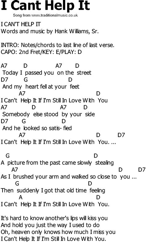 Country MusicI Can't Help ItHank Williams Lyrics and Chords