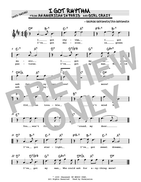 Chord I Got Rhythm Gershwin tab, song lyric, sheet, guitar