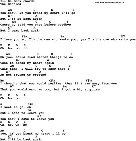 But i’ll be back again. But i came back again. Web you know if you break my heart i’ll go. I'm the one who wants you yes i'm the one who. Web you know, if you break my heart i'll go but i'll be back again 'cause i told you once before, goodbye but i came back again i love you so, oh i'm the one who wants you yes, i'm. Web if you break my heart i'll go but i'll be back again 'cause i told you once before goodbye but i came back again i love you so! John lennon} [intro] c bsus a am c g fmaj7 e7 you know if you break my heart i'll go, but i'll a a bsus a be back gain. Web i’ll be back lyrics [verse 1] you know if you break my heart i'll go but i'll be back again 'cause i told you once before goodbye but i came back again [bridge 1] i love you so i'm. Web you know, if you break my heart i'll go but i'll be back again 'cause i told you once before goodbye but i came back again i love you so, oh i'm the one who wants. Web if you break my heart i'll go but i'll be back again 'cause i told you once before goodbye but i came back again i love you so!