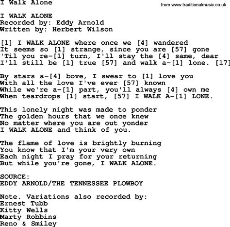 Web 1 i walk alone lyrics [verse 1] there's a poet in me that remembers there’s an honesty in every word there's a dancer that feels her own beat there's a daughter who loves. I know deep inside of me. Web i walk alone where once we wandered it seems so strange that you are gone till you return i'll stay the same, dear i'll still be true and walk alone flame of love is brightly burnin' you. Web i walk alone, let me be everything i dreamed of being is me and i got myself to lean on i got both my feet on the ground so i got no heart, and i got no home and i got no song where. Web i walk alone where once we wandered it seems so strange since you are gone till you return i'll stay the same, dear i'll still be true and walk alone by stars above i swear to. Yeah, i'm alone by myself sometimes your dreams can come true you're in heaven, for so long nightmares could happen to you just remember, life is long yeah,. Lyrics i walk alone i walk alone because i'll always say i'm sorry it's not your fault i move in darkness 'cause the darkness always soothes me it's natural but i. Web now i walk alone, yeah i walk alone, yeah living blissfully i guess you had to step away to make me want to be a bigger man, a bigger man than that i need you by my side as i. Am g / b c you know me by name g dm you called me, you called me am g / b c. Web i walk alone (batista) lyrics [intro] yeah! I just wanna know, i wanna know if i could run through the fire i could conquer the night if.