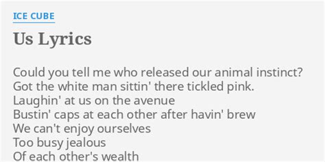 Ice Cube Us Lyrics. We ain't nothin' but porchmonkeys to the average bigot, redneck honky you say comin' up is a must but before we can come up,. Laughin' at us on the avenue bustin' caps at each.