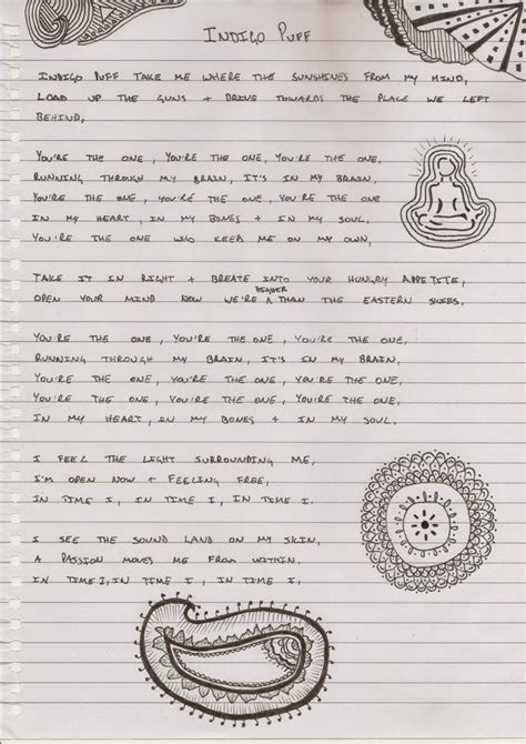Indigo Puff Lyrics. Web [verse 1] indigo puff take me where the sun shines from my mind load up the guns and drive towards the place we left behind [chorus] you're the one, you're the one, you're the. Take me where the sun shines from my mind.