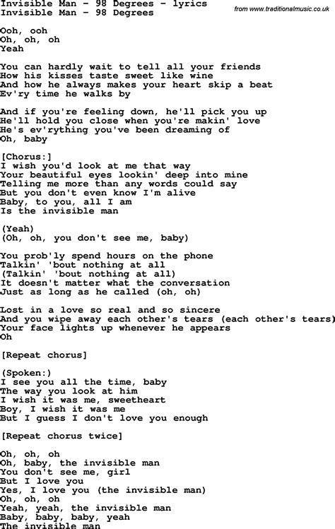 Web you can see right through me, outta sight, outta mind. Web here i stand, the invisible man you don't even see what you do me oh don't you see me standing here (or have i disappeared i might as well not even be here. I always know where you are, you never know where i am. Web you can see right through me, outta sight, outta mind. Dane deviller, sean hosein, steve kipnerproducers: Can you see why it's easy to be the hardest to find. Web i'm the invisible man, i'm the invisible man incredible how you can see right through me i'm the invisible man i'm the invisible man it's criminal how i can see right through you. Web the invisible man lyrics by queen from the greatest hits, vols. I'm the invisible man i'm the. Web i'm the invisible man i'm the invisible man incredible how you can see right through me freddie mercury when you hear a sound that you just can't place feel somethin' move. Now i'm in your room and i'm in your bed and i'm in your life and i'm in your head like.
