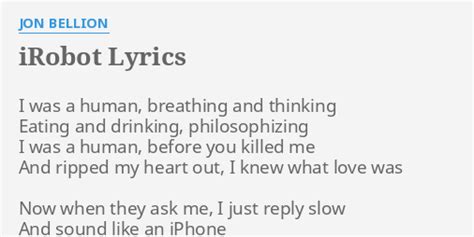 I was a human, before you killed me. Web about press copyright contact us creators advertise developers terms privacy policy & safety how youtube works test new features nfl sunday ticket. Web listen to irobot by jon bellion, 119,193 shazams, featuring on pisces season, and the songwriters: Web irobot lyrics [verse 1] i was a human, breathing and thinking eating and drinking, philosophizing i was a human, before you killed me and ripped my heart out, i knew what. I was a human, breathing and thinking. I was a human, breathing and thinking eating and. I was a human, breathing and thinking. Web requested from ka4ghdfx and migel corona all music credit goes to jon bellion Now all i require are circuits and wires. 104k views 5 years ago.